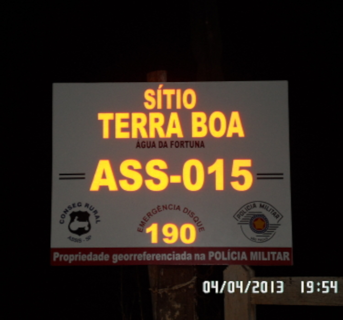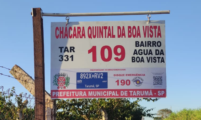 Com a identificação e georreferenciamento das propriedades rurais o emplacamento, vem complementar o trabalho de localização, sendo uma referência colocada na entrada da propriedade.