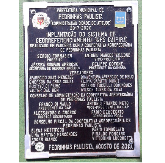 PLACA INAUGURAÇÃO DO CEPRURAL (GPSCAIPIRA) EM PEDRINHAS PAULISTA-SP.
