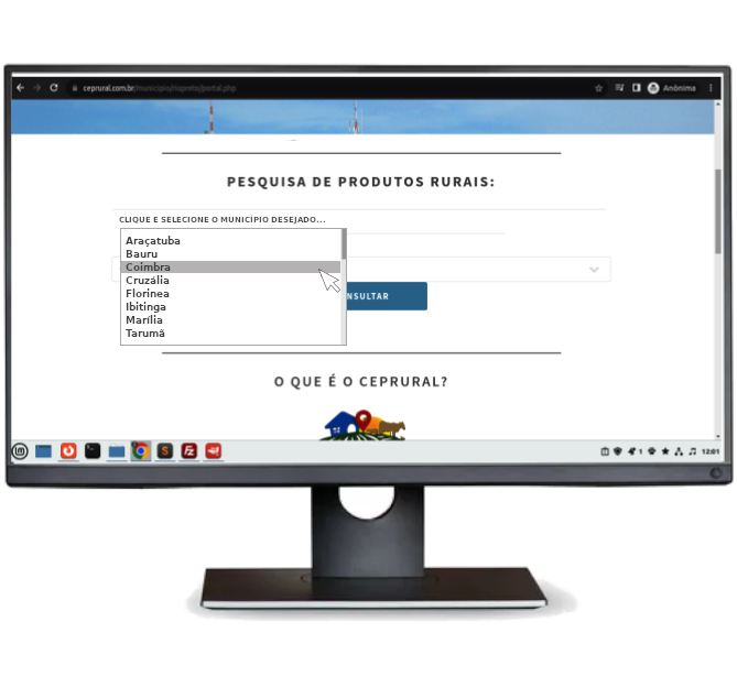 De forma prática o consumidor final realiza a pesquisa do produto de seu interesse por município.