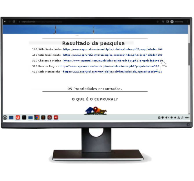Ao realizar a pesquisa, o portal irá apresentar todas as propriedades rurais do município selecionado que vendem o produto selecionado.