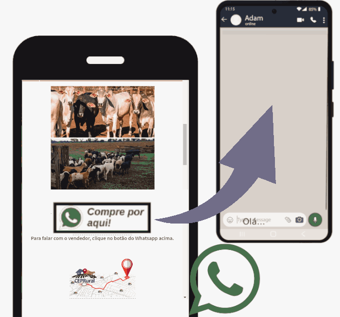 O botão Compre por aqui! tem a finalidade do acesso rápido e direto do consumidor junto ao produtor rural daquela propriedade via canal Whatsapp.